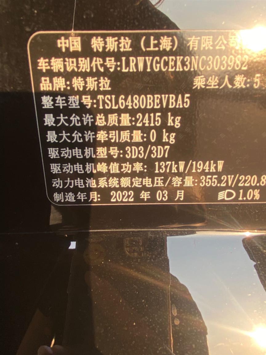 车型: 特斯拉 Model Y 2022款 长续航全轮驱动版