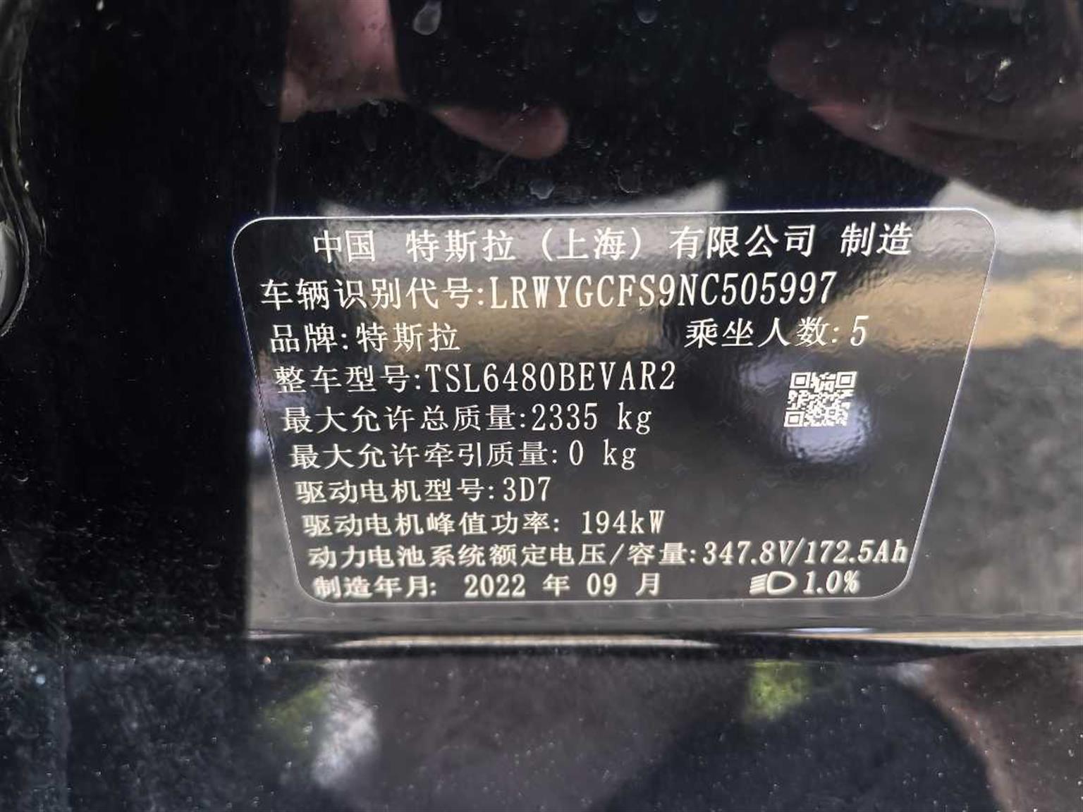 车型: 特斯拉 Model Y 2022款 后轮驱动版