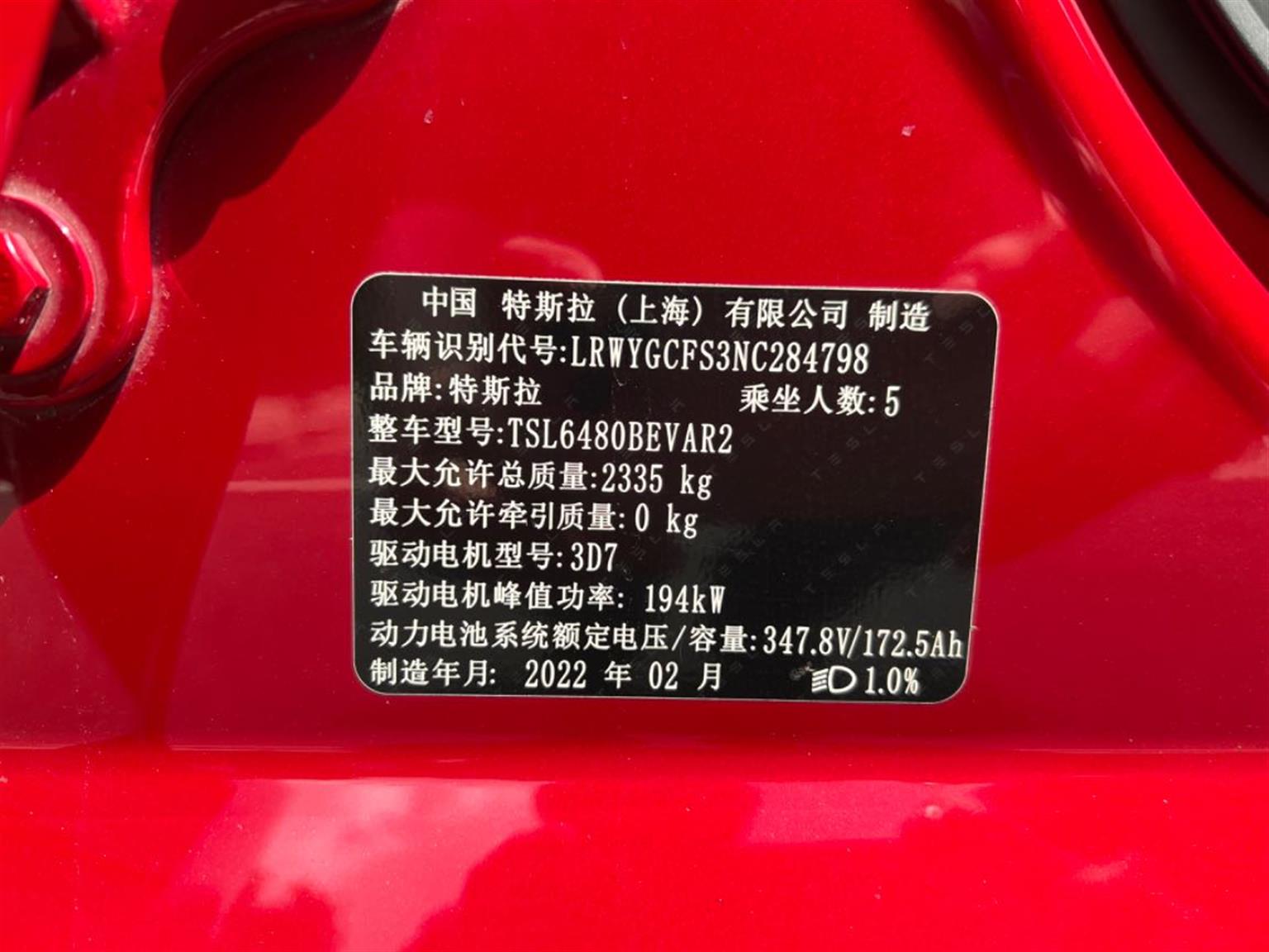 车型: 特斯拉 Model Y 2022款 后轮驱动版
