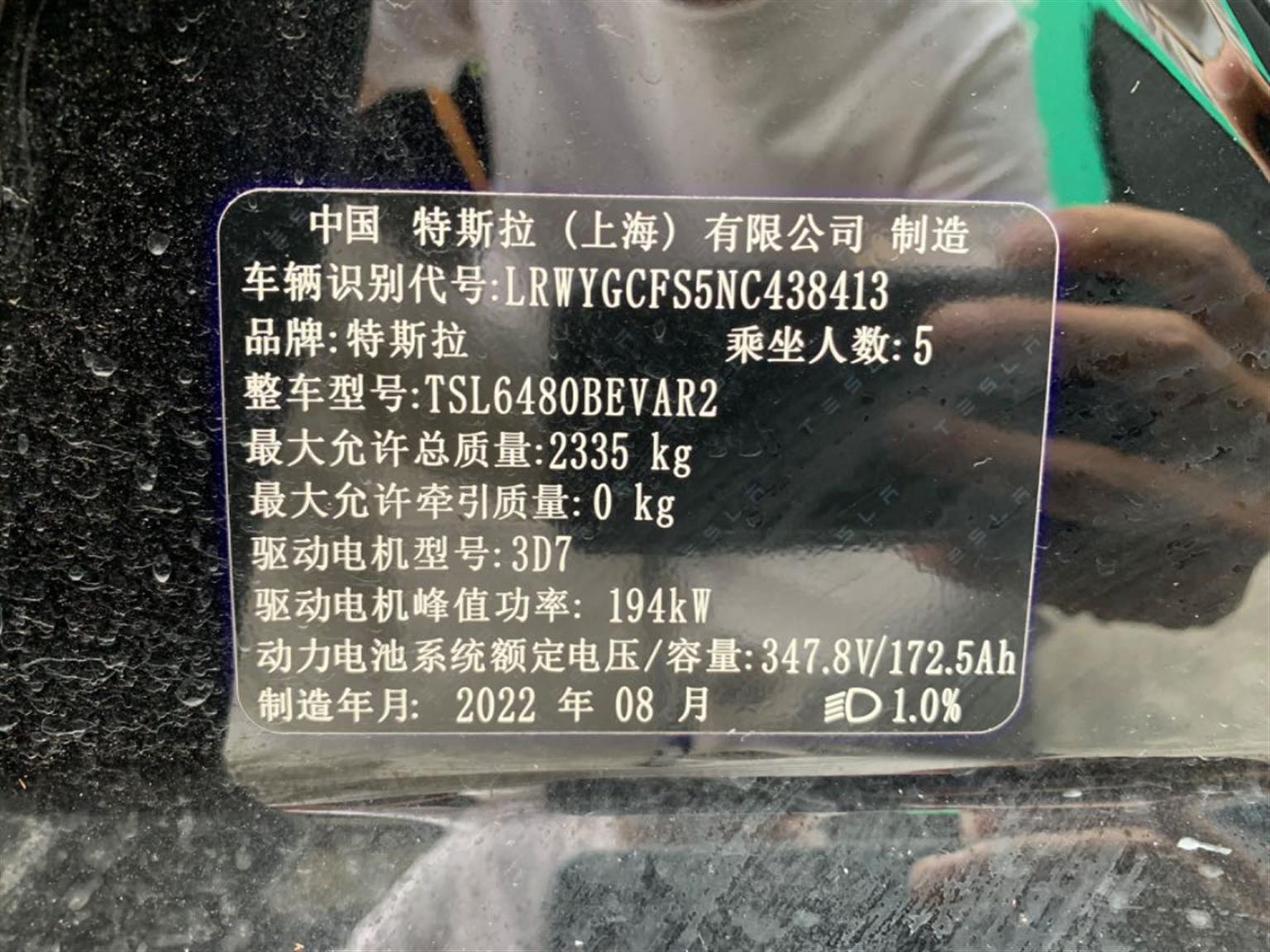 车型: 特斯拉 Model Y 2022款 后轮驱动版
